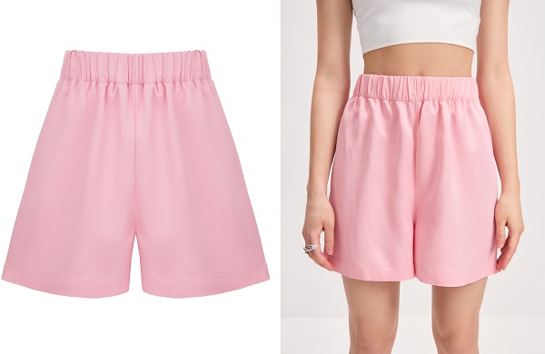- Розовые шорты. Демонстрируют нежность с характером. Их отличает не кричащий оттенок, который является частью пастельной симфонии. Такая модель привносит в образ легкость и игривость без излишней наивности. Розовые шорты в удлиненном формате прекрасно комбинируются с контрастными фактурами. Они могут стать интересным акцентом в монохромных образах. Их отличает свободный, но не мешковатый силуэт.
